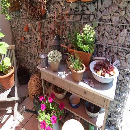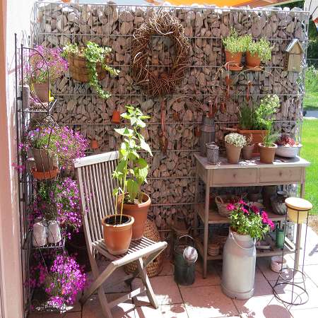 Die Gabione ist die Abgrenzung zum Nachbarn! Ich bin ja eigentlich nicht der Freund dieser Wände… aber so ein kleines Stückchen finde ich gar nicht so schlecht! Man kann wunderbar Deko anbringen!!!