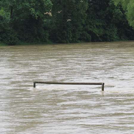 Unsere Stadt hat in den 50er Jahren zum Glück eine sogenannte Flutmulde gebaut. Das ist ein trockenes Flussbett, das normalerweise als Naherholungsgebiet dient und sich kilometerlang durch die Stadt zieht! Bei Hochwasser wird diese Mulde geflutet und schützt so die Stadt vor Überschwemmungen.