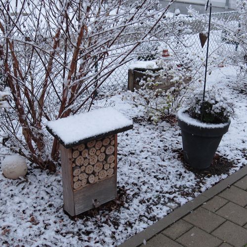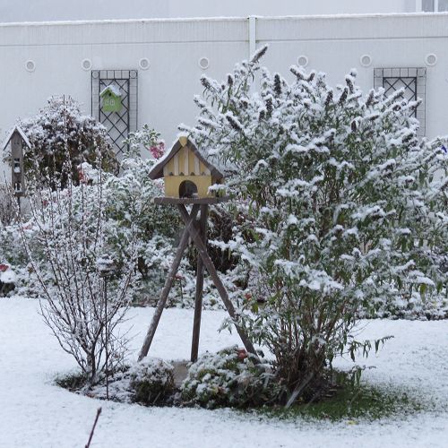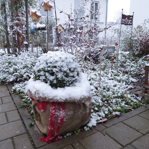 Schön…das sieht schon richtig weihnachtlich aus bei dir. Die Kübel sind ja hübsch verpackt. Wenn irgendwo Schnee angesagt ist, dann sind wir meistens dabei und so war es auch heute. So ein Hängevogelhaus habe ich nun nicht mehr, da bei Schnee dort das Futter unbrauchbar wurde…;-))